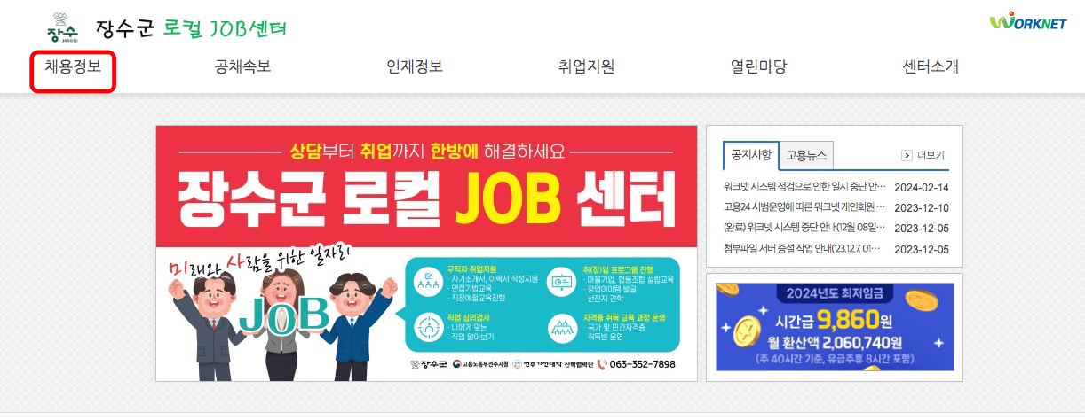 장수군청 홈페이지 (장수군 로컬 잡 센터)