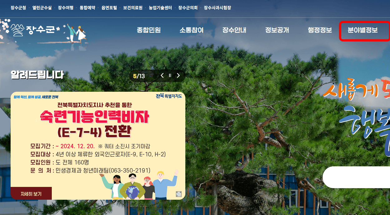 장수군청 역시 다른 지역과 마찬가지로 군민들을 위한 복지 정보를 제공합니다. 복지 정보 확인을 위해서는 아래 링크를 통해 장수군청 홈페이지에 방문해 보시기 바랍니다.