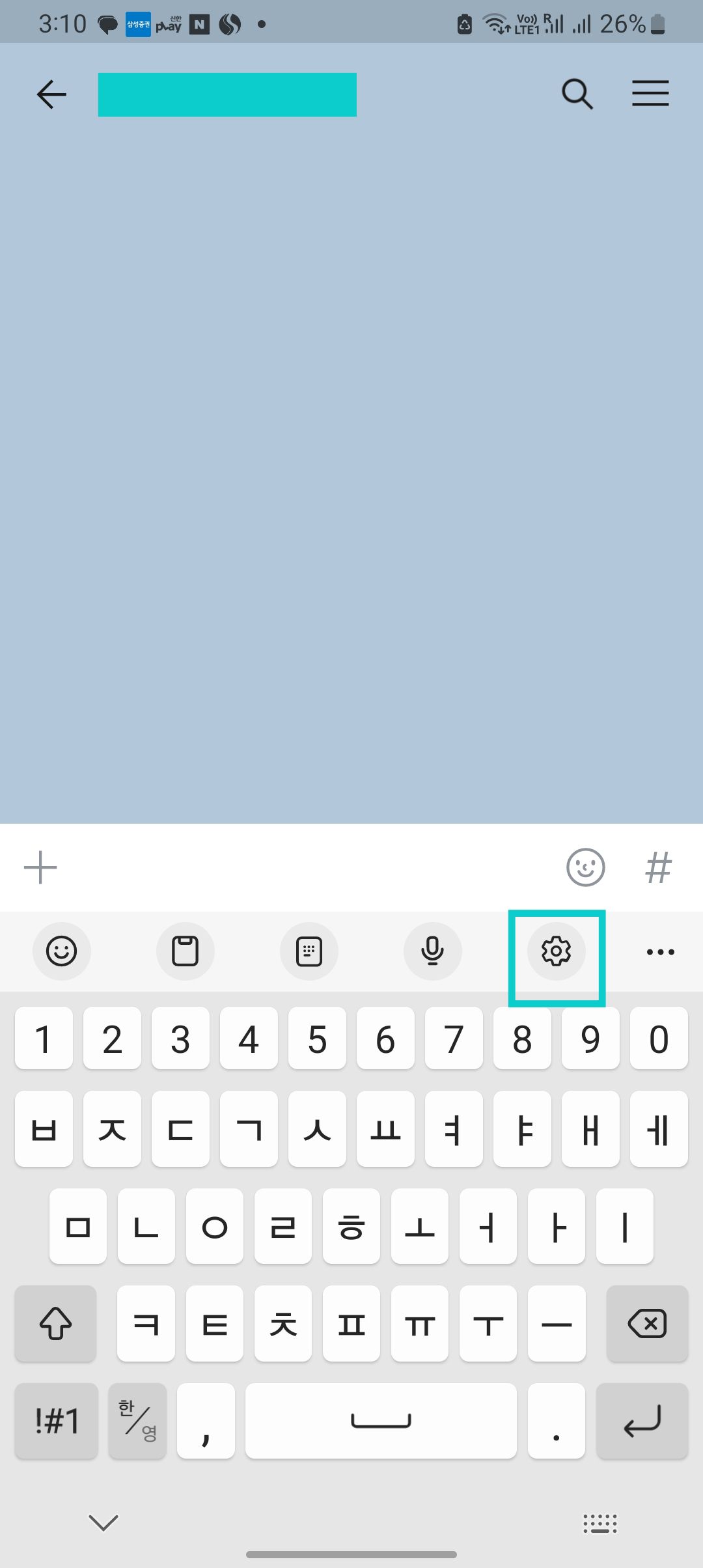 이 상태에서 입력한 문자를 삭제하면 위와 같은 서브 메뉴를 확인할 수 있습니다. 메뉴에서 톱니바퀴 아이콘을 터치합니다.