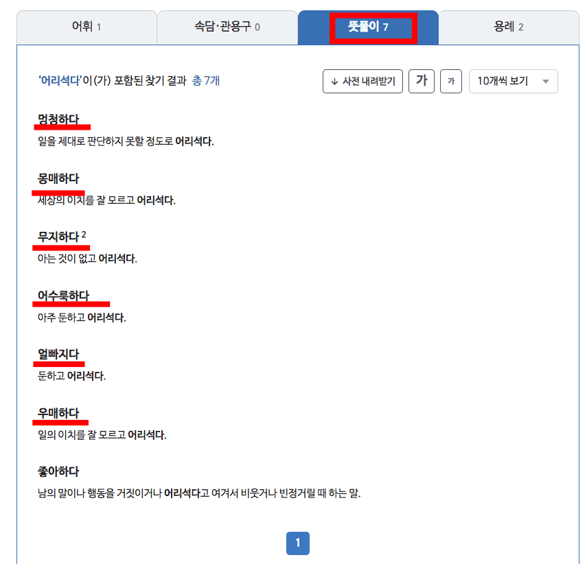 여기에서는 ‘어리석다’의 사전적인 의미를 찾아보았습니다. 사전적인 의미는 생각이나 행동이 똑똑하거나 지혜롭지 못하다라고 합니다. 상단메뉴에서 뜻풀이 메뉴를 선택하면 어리석다와 관련된 다양한 표현들의 찾아볼 수 있습니다. 용례를 확인하시면 어리석다가 활용된 예시도 찾아볼 수 있습니다.